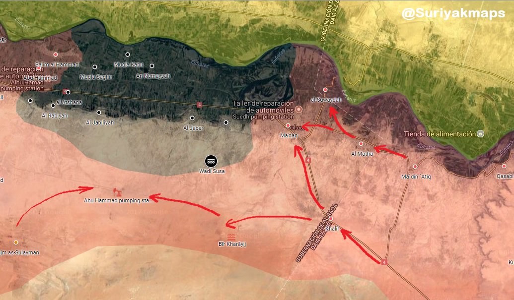 Сирийские войска наступавшие к югу-востоку от Ракки встретились с войсками наступавшими к северо-западу от Дейр-эз-Зора вдоль Евфрата.