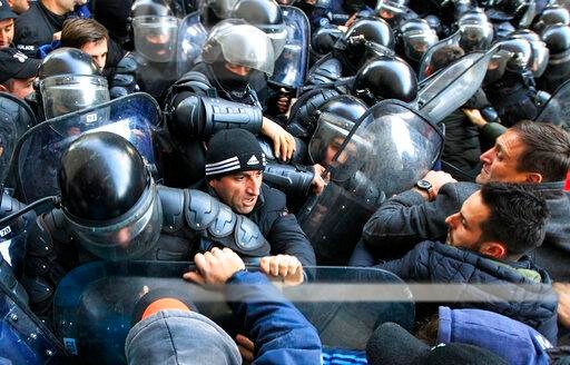 2. Оппозиция, в том числе поддерживающие Михаила Саакашвили, пытается блокировать парламент и добиться ухода правительства, контролируемого олигархом Бидзиной Иванишвили.