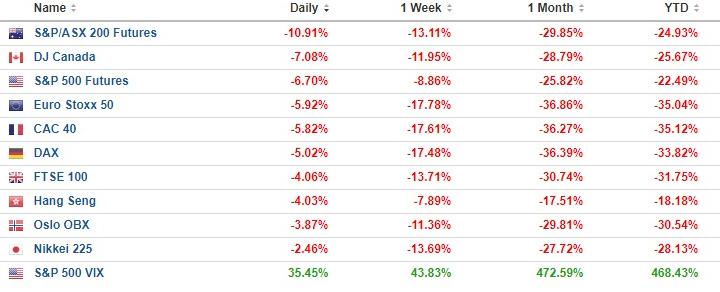 1. Мировые фондовые биржи продолжают обваливаться, что создает негативные экономические прогнозы.