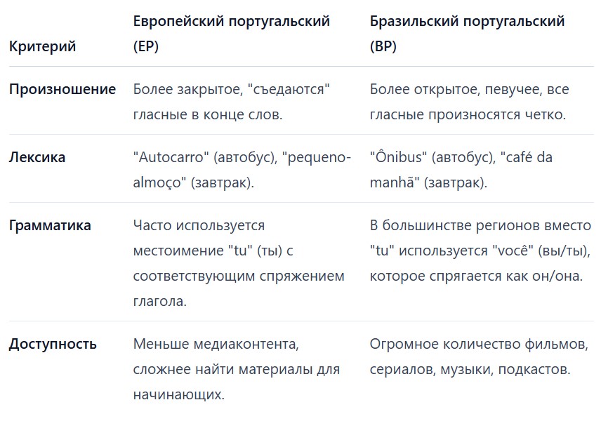 Вывод: Если у вас нет конкретной цели, связанной с Португалией, начинайте с бразильского варианта. Это ускорит ваш прогресс.